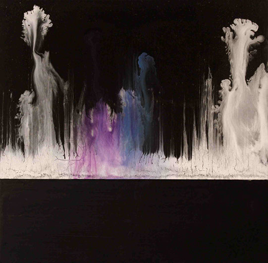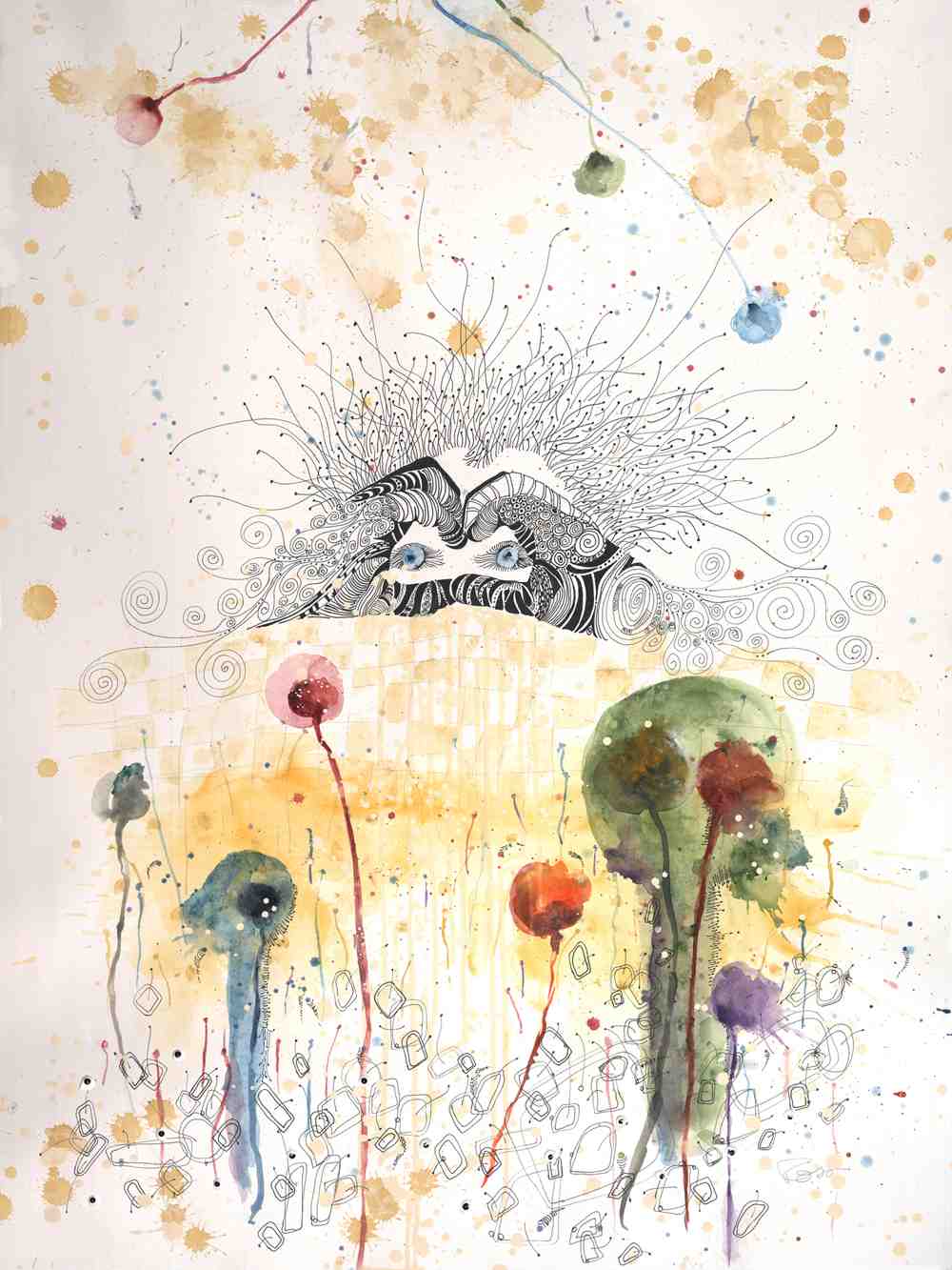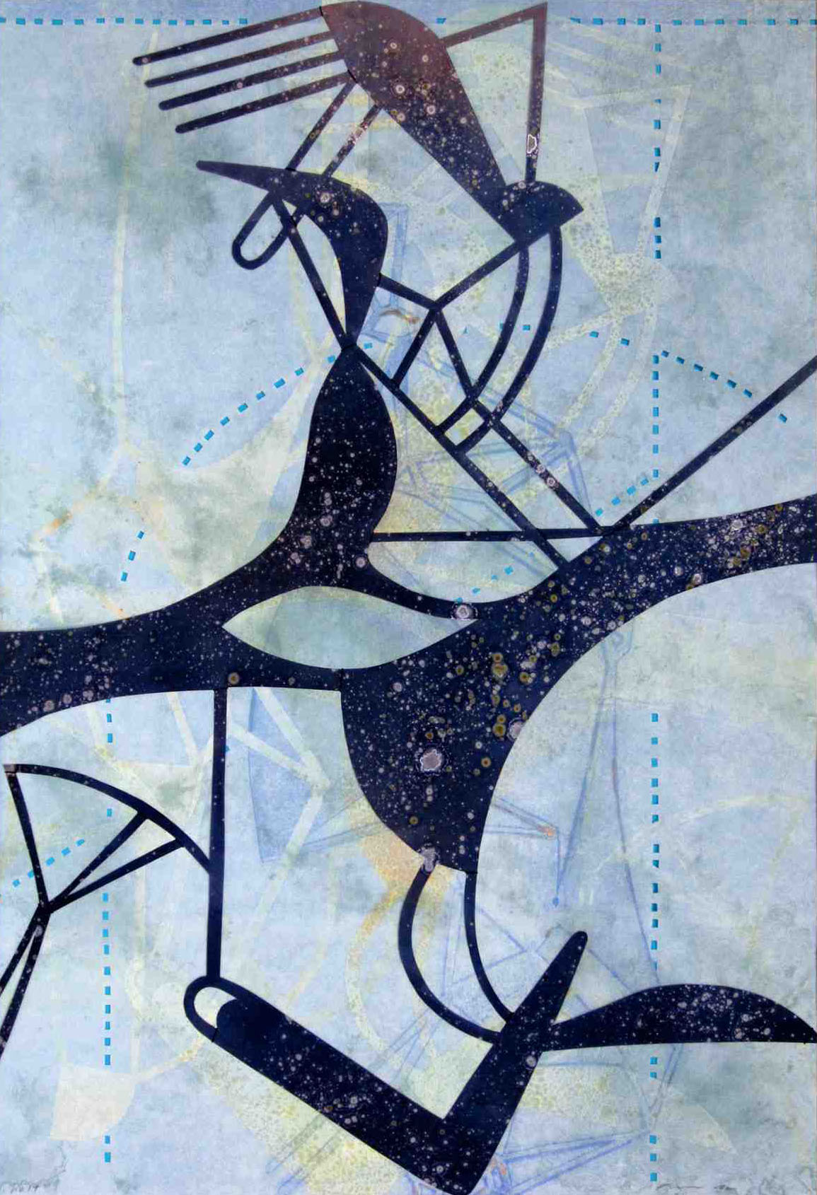 This is my first recollection: a fascination with the juxtaposition of situation and parts. This has continued to expresses itself in my art. This work explores the disconnectedness of my thoughts—so I like pushing and pulling the tension using ink and paint…I create the cause of the risk within the “watching the paint dry —anticipation.