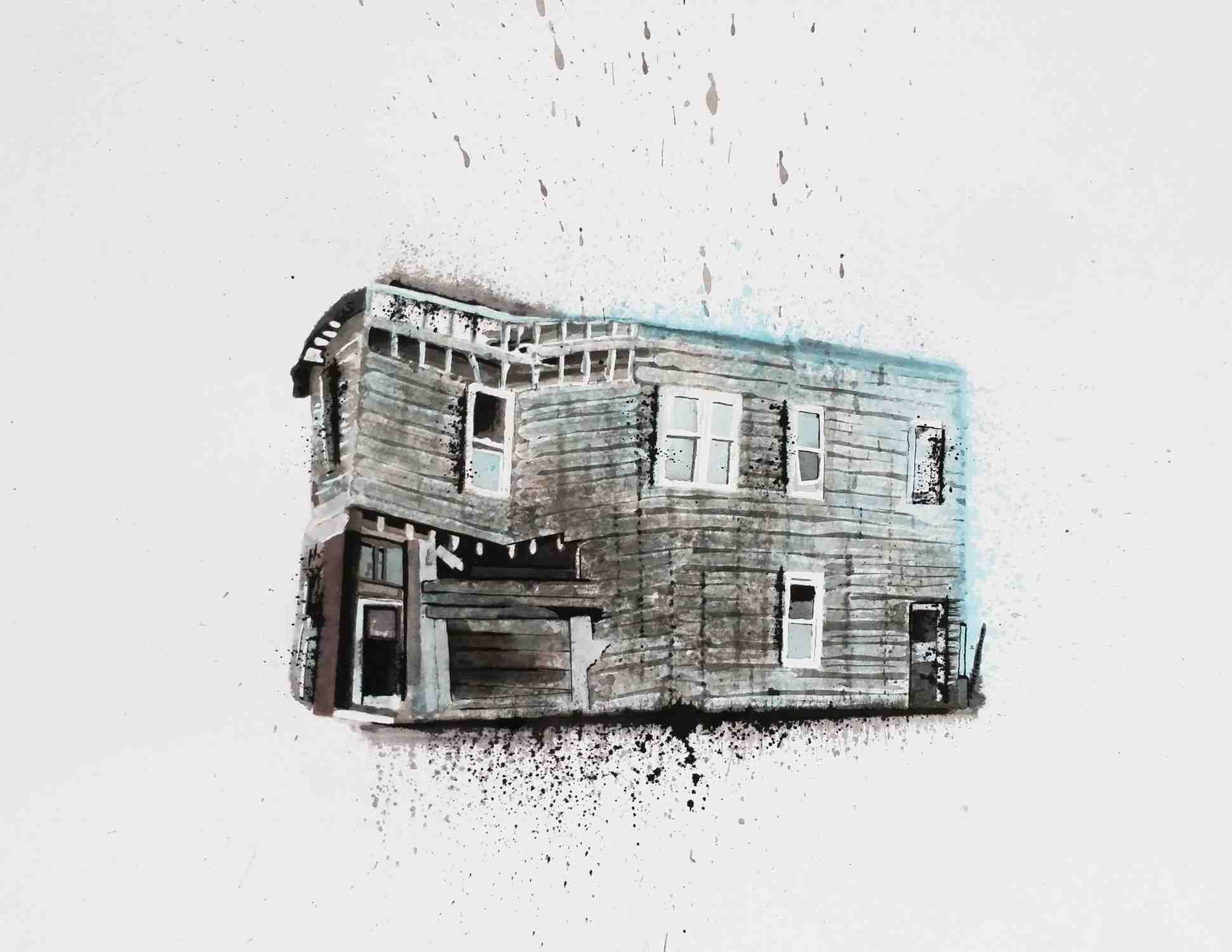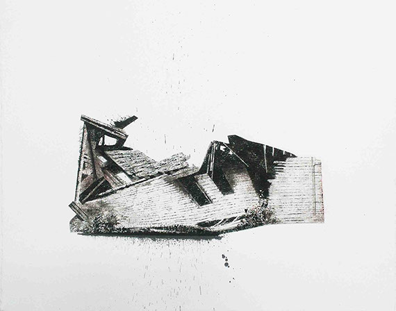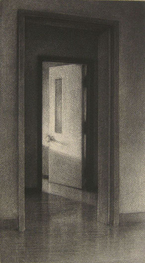 I moved to Detroit in 2009 to join the faculty of Wayne State University. I found, not only Detroit, but the Mid-West in general, to be full of unfamiliar sights and sounds. I was also confronted by the architectural decay that was, initially, frightening. I began to draw these skeletons of buildings to familiarize myself with my new environment. Through drawing, I learn to understand new information. I internalize it and know it in a way that transforms it into something familiar and less frightening. These drawings are fairly large but they are intimate studies of my neighborhood as I become familiar with it. You could say that I am drawing close to Detroit. I have titled the series Frontline: Detroit because I still begin my drawings with ‘snap lines’. I use them to find the main compositional and architectural lines to anchor the drawing.