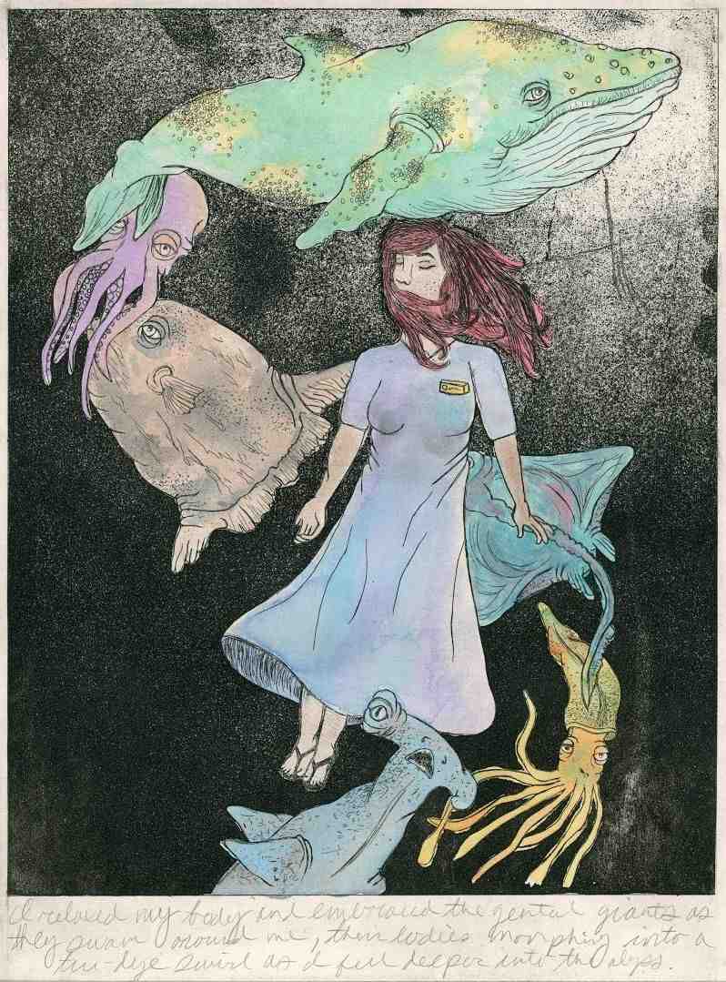 My art is an imprint of my observation, feeling and thoughts from daily life. In my work, I have been exploring the combinations of various printmaking methods, such as intaglio, relief and monotype.