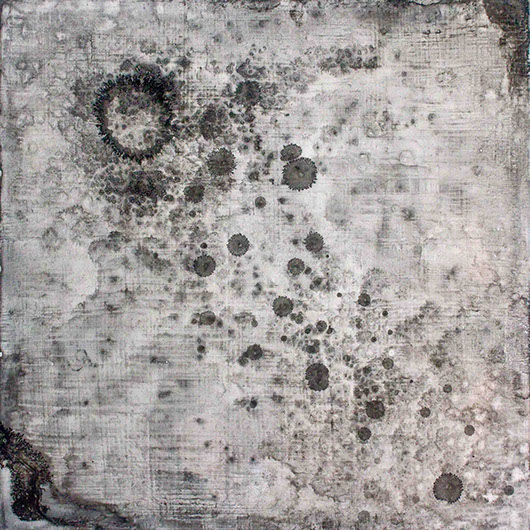 I began making drawings of ink and ink wash about 10 years ago using a technique that I call a ‘snap line’. A ‘snap line’ is the mark made by dipping cotton twine into liquid ink or diluted ink, pulling it tight and snapping it against the paper in an action similar to plucking a guitar string. It is a record of the violent impact of ink with paper. It suggests an event, an explosion, a reverberation, yet the over spray lends a softness to the line quality. I like the idea that something beautiful on the surface has an underlying violence, a dark side, if you will.