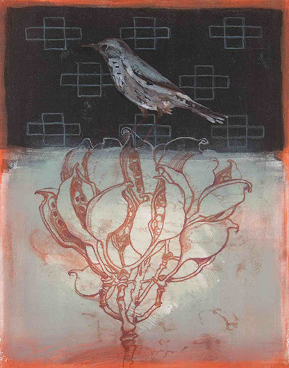 My work reflects the landscape and cultural imagery related to my Native American background. I am a member of the Cupeño band of southern California Indians. Our traditional songs, called ‘bird songs’, and creation stories have played an important role in how I see the natural world. These stories and songs, in which plants and animals are the characters, tell about how the world came to be, and how the people came to be where they are. The ‘bird songs’ tell about the journey of the people, which is said to parallel the migration of the birds. The songs tell about what the birds see: the mountains, deserts, night sky, and other landmarks. Through the use of color, light, Native American rock art designs, and plant and bird imagery, my work evokes a sense of place and journey.