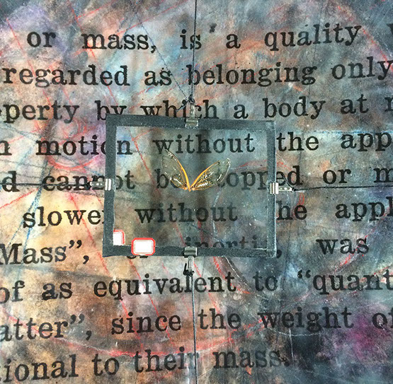 mixed media assemblage: ink and found objects