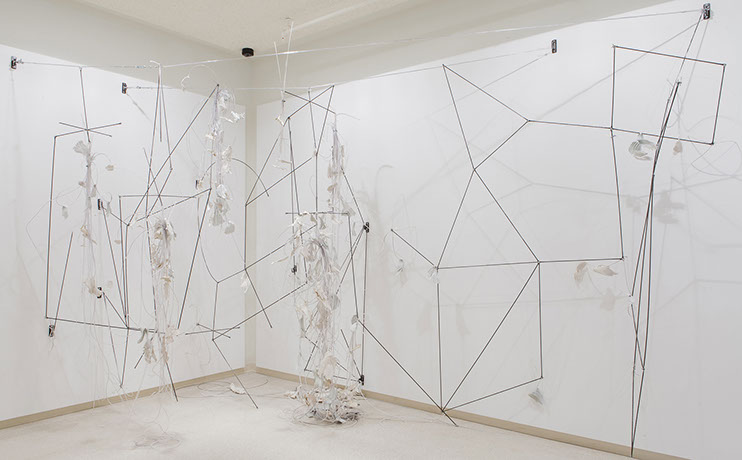 I like that all of these forms are basically created from one strand and that one string can become a shape that has so many different associations. Our bodies: skin, fat, and bone, sex, food, and fetishistic attachments–these are my thoughts while working.